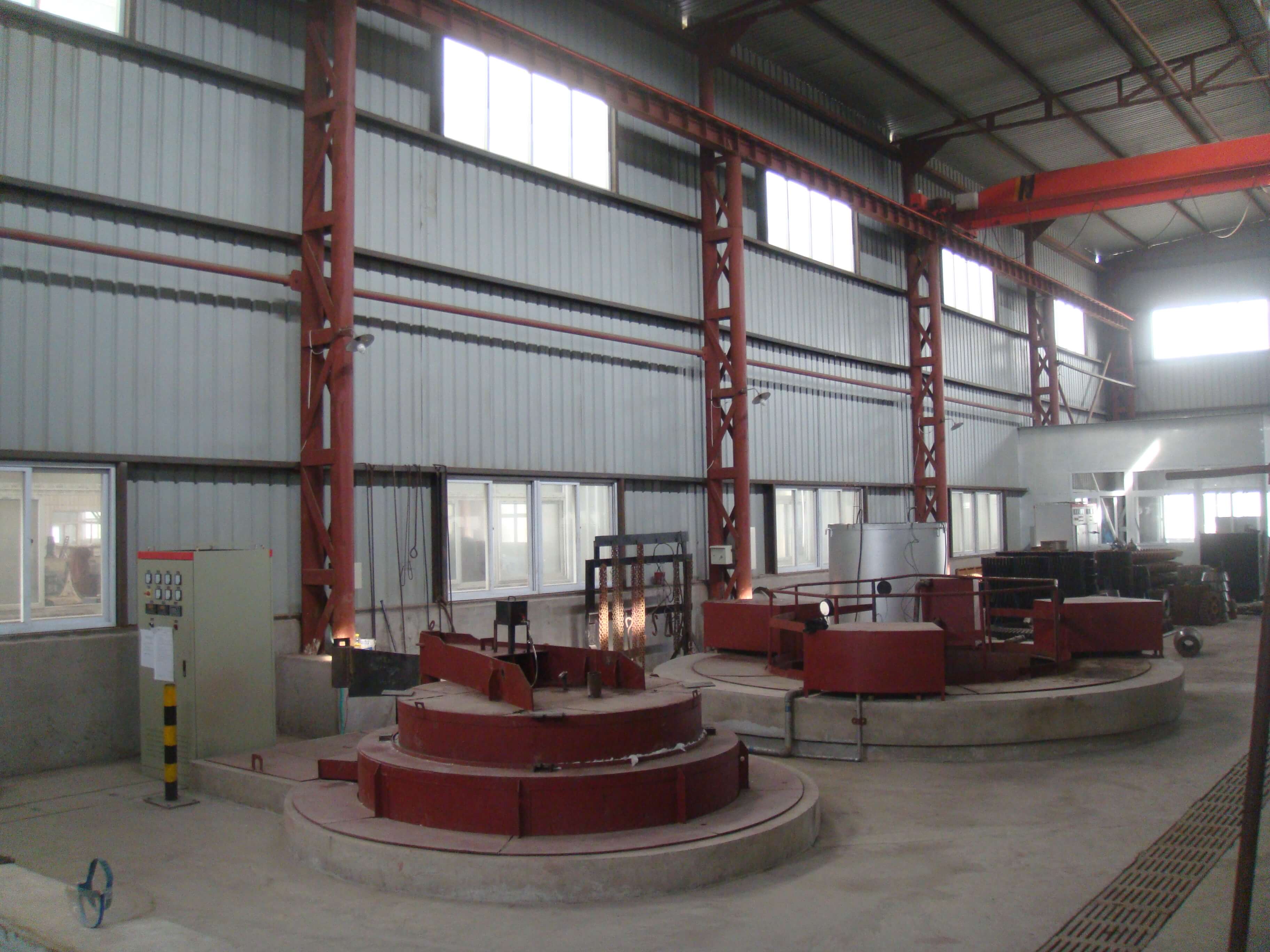 ,10t吊車2 臺。擁有CLCHL3600-400超音頻數(shù)控齒輪噴液淬火機1臺;RT3-2009-9全纖維爐襯臺車式電阻爐1臺;RJ3-180-11全纖維爐襯井式電阻爐1臺,J4-135-5不銹鋼爐襯回火爐1臺;180立方米淬火液槽3個...